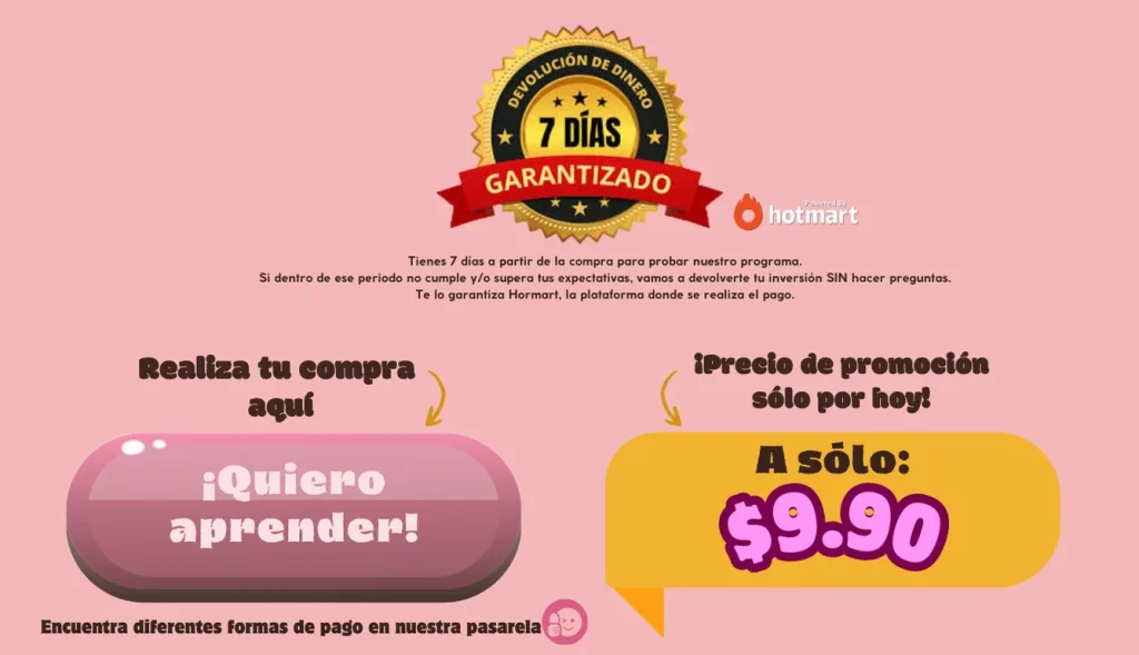 ¡Totalmente! Nuestro programa se encuentra respaldado en tecnología , soporte y seguridad por HOTMART, la compañía de productos digitales más grande del habla hispana, ellos aseguran tu pago y tu dinero por 7 días, en caso de querer un reembolso.